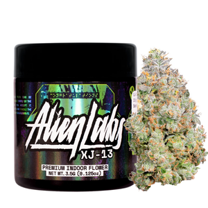 XJ-13 — a premium Sativa celebrated for its sharp citrus flavor, crystal-heavy buds, and energizing, clear-headed high. Known for its vibrant aroma and smooth potency, XJ-13 highlights Alien Labs’ mastery of elite genetics, delivering an uplifting smoke that’s as functional as it is flavorful.